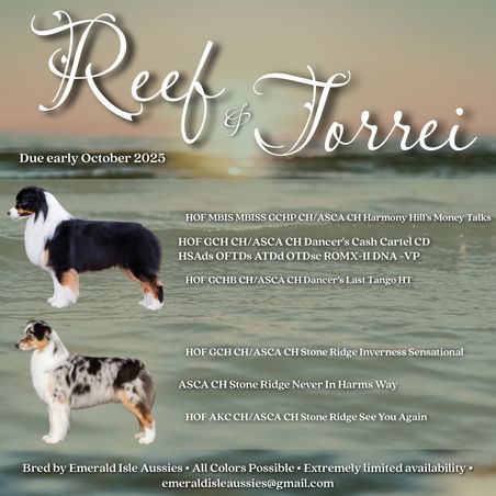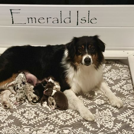 I'm Adrianne & Kamron T., the breeder behind Emerald Isle Australian Shepherds located in Liberty Hill, TX. Emerald Isle is a Hall Of Fame Kennel committed to the preservation & health of the Australian Shepherd. We produce dogs who excel in competition & foremost as family companions. We take our responsibility as preservation breeders seriously, giving our babies a solid start to become adjusted adults!