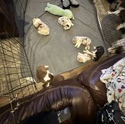 “Puppies are fully vetted, dewormed, w/first vaccination, our puppies go home with a “puppy packet” that has their parents info, vaccination record, & a handbook to give you & your baby the best start! A deposit goes towards the price of your puppy, while non-refundable the deposit can be transferred to a later litter!”