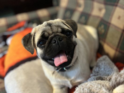Buddy is a male Pug. Carefully selected as a great representative of his breed, Emily decided to make him part of their program. Emily has passed Good Dog’s screening process, which involved a review of their breeding practices, environment, and the mental and physical health of their dogs.