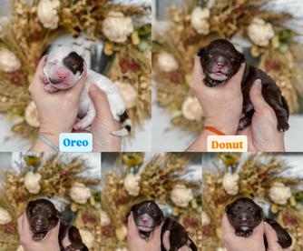 Our Goldendoodle puppies include petite and miniature sizes. Australian Labradoodle puppies are miniature size. Sizes will vary depending on the parent dogs.