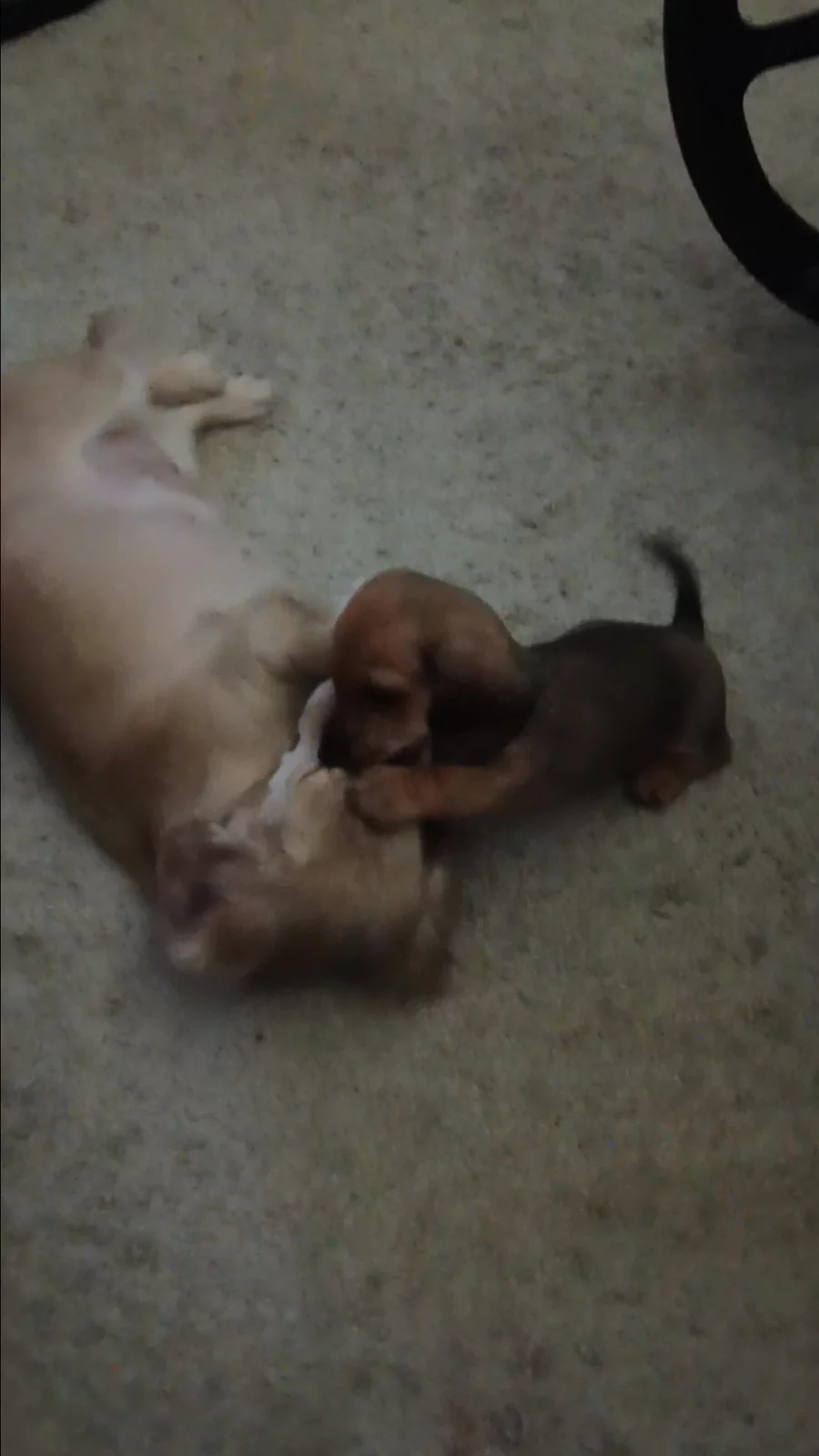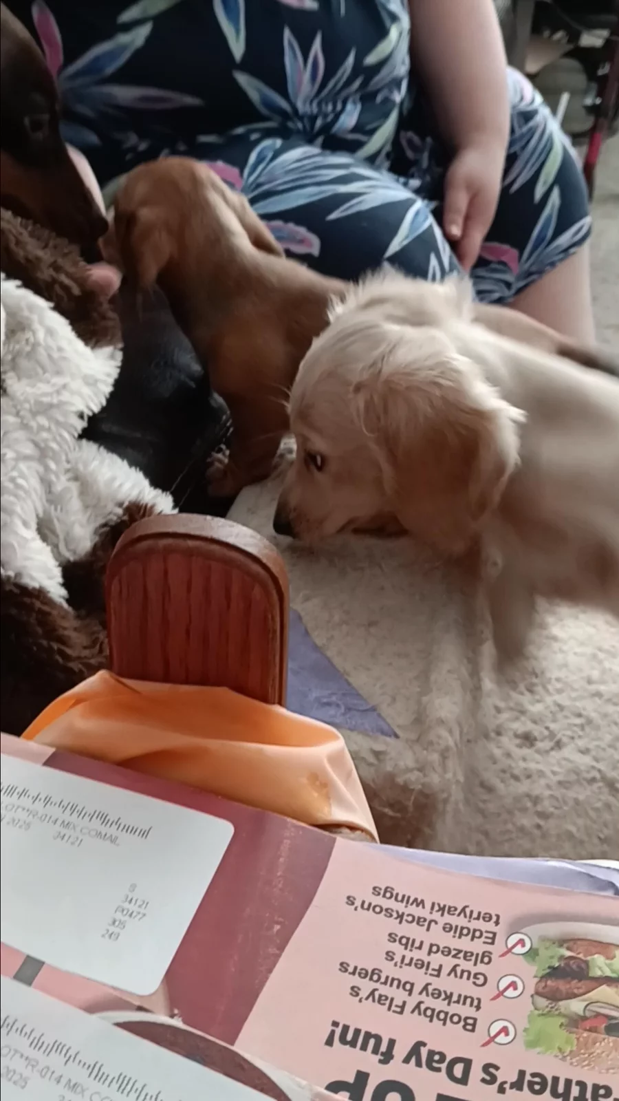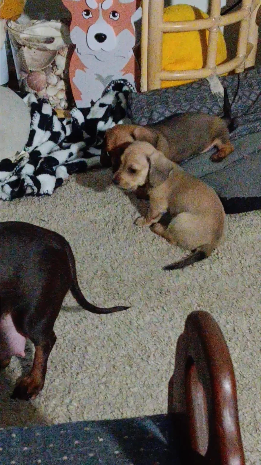 Big adventure yesterday—the pups had their very first run around the living room! 🐾 They were full of curiosity, exploring all the new textures and smells. Maya jumped right in to play, and Nellie was thrilled to have some new buddies in her space. Nothing but wagging tails and happy chaos! 😂❤️