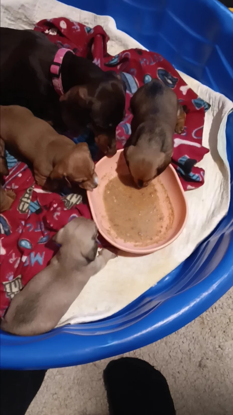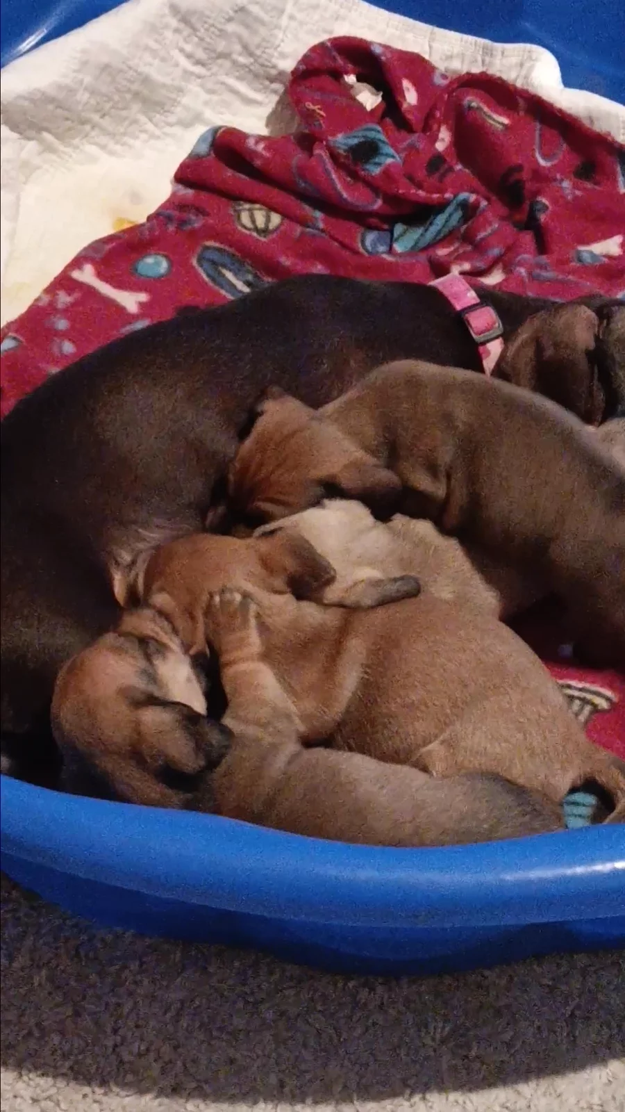 The babies are 25 days old and on the move! Tomorrow they get their very first taste of mush. 🍼🐾 I even caught our little pie girl trying out her bark on video—though you’ll mostly hear mama Taffy fussing in the background because I dared to hold one of her precious babies, lol. 💕
