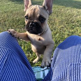 We received little Pablo (Armani) from Nicole, and our experience has been great. Pablo is sweet, well mannered, and lively. He slept through the night in a play pen without a single issue. He also has a new Frenchie “brother” that he has immediately taken to, so he was well socialized on arrival. He’s definitely made himself at home, and we’re extremely happy for that!
