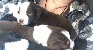 I became interested in Australian Shepherds because of their energy and loyalty. I liked their herding quality to keep an eye on my child but they are also fierce companions. They want to spend every minute with you. We loved our dogs so much and thought they would have beautiful puppies (which they did). The miniature size is nice. They weigh just under 40 pounds.
