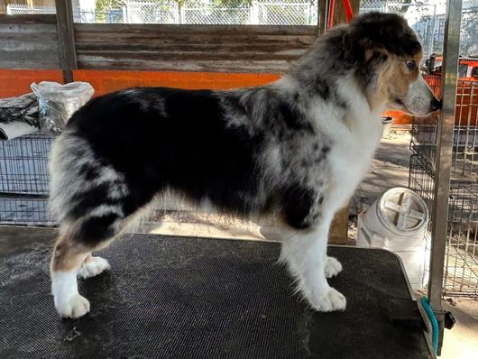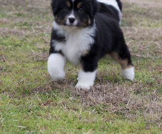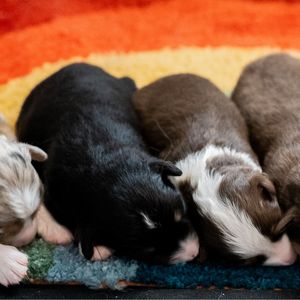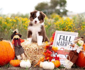 Our puppies include red tri-color, black tri, red merle, and blue merle. Colors will vary depending on the parent dogs.