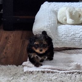 Krista was so great to work with. I was very happy with her responsiveness to all our questions about our puppy, Bonny. Pick up day was very easy and the puppy was healthy, clean, sassy and spunky! Prior to that day , Krista did FaceTime with us so we could see Bonny running and playing with close up viewing. My husband was so excited to pick up the puppy that he couldn't get any sleep the night before pick up day. Bonny loves her new Papa! It was a lovely experience and I highly recommend Empire Yorkies!
