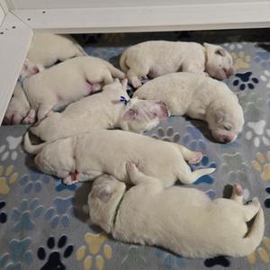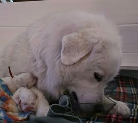 This is my 3rd Great Pyrenees. I have a 2yr old Newfie and wanted him to have a brother! I have to say that Erin was and is the most awesome breeder I have ever worked with! Incredibly knowledgeable and always available for questions and advice. Bromley (Eric) is a well adjusted, very happy puppy and loves his big brother. He came home on September 6th and by the 30th was toilet trained. He loves his crate, toys and playing outside with Bear! He is growing rapidly and we just love him to bits! Thank you Erin for a beautiful, fun loving puppy!🥰