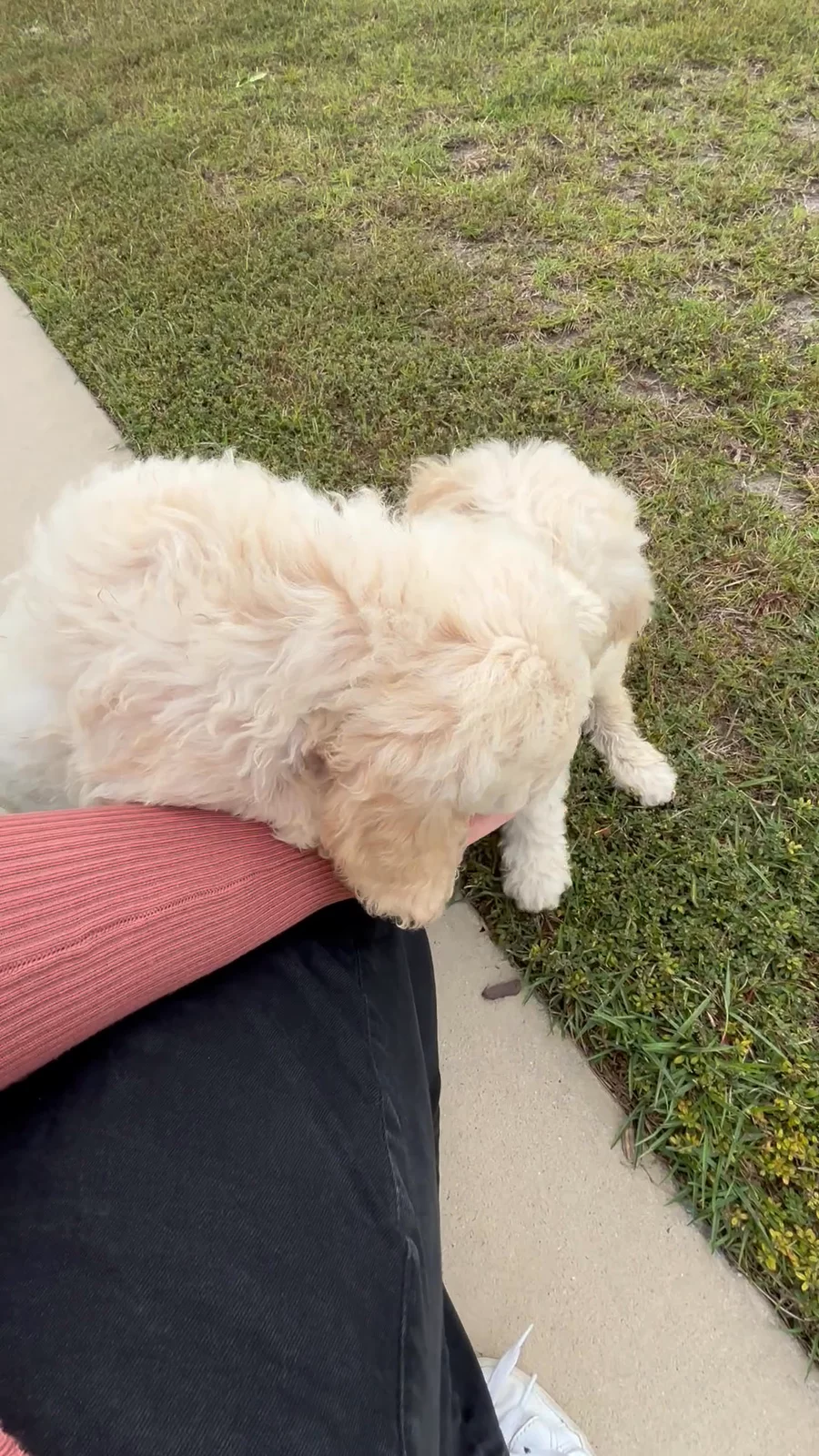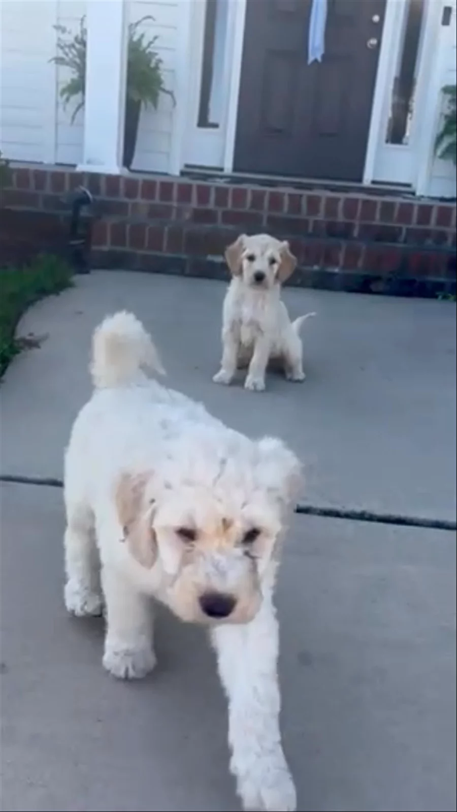 Snowy is a fluffy white Goldendoodle with a heart full of love. She’s playful, gentle, and the sweetest cuddle buddy you could ever ask for.