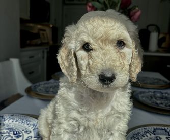 Dwight is a male Goldendoodle. Carefully selected as a great representative of his breed, Philip decided to make him part of their program. Philip has passed Good Dog’s screening process, which involved a review of their breeding practices, environment, and the mental and physical health of their dogs.