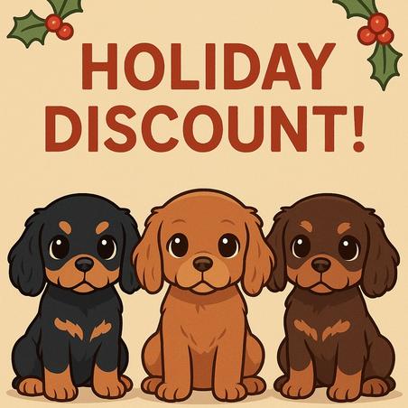 Our puppies include blenheim, ruby, black and tan, tri-color, and chocolate. Colors will vary depending on the parent dogs.