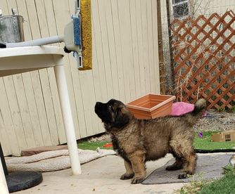 I got very involved with the Leonberger breed first and educated myself about the breed history, genetic, health, and everything else to do with this wonderful and still rare breed. Breeding has to be done with much caution because of the limited gene pool. My boy has been bred for the first time at age 5! -- I also always wanted a Standard Wirehaired Dachshund. When I found out that one of my Leonberger breeder friends has SWDs too, I asked her to please let me have one from her upcoming litter which she did. And that's how I got my beautiful girl Mia in the spring of 2019. She gave me 2 amazing litters of puppies, and I am keeping one puppy from each litter to add to my line of best quality dogs.