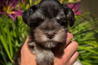 I'm Kaylor H., the breeder behind Enchanted Paws located in Dorr, MI. Our dogs are our beloved companions. We care deeply about this breed and are proud to be responsible Miniature Schnauzer breeders. Our puppies are raised with love in our home, and we strive to help each one grow up with confidence so they are ready to leave with their new families. They are affectionate, intelligent, and cute as can be!