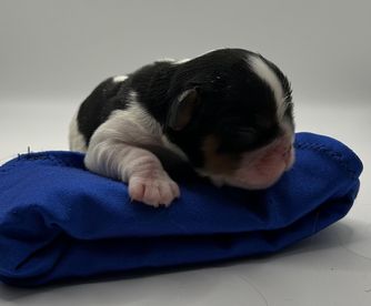 Our puppies include red and white, black white and tan, and black and tan. Colors will vary depending on the parent dogs.
