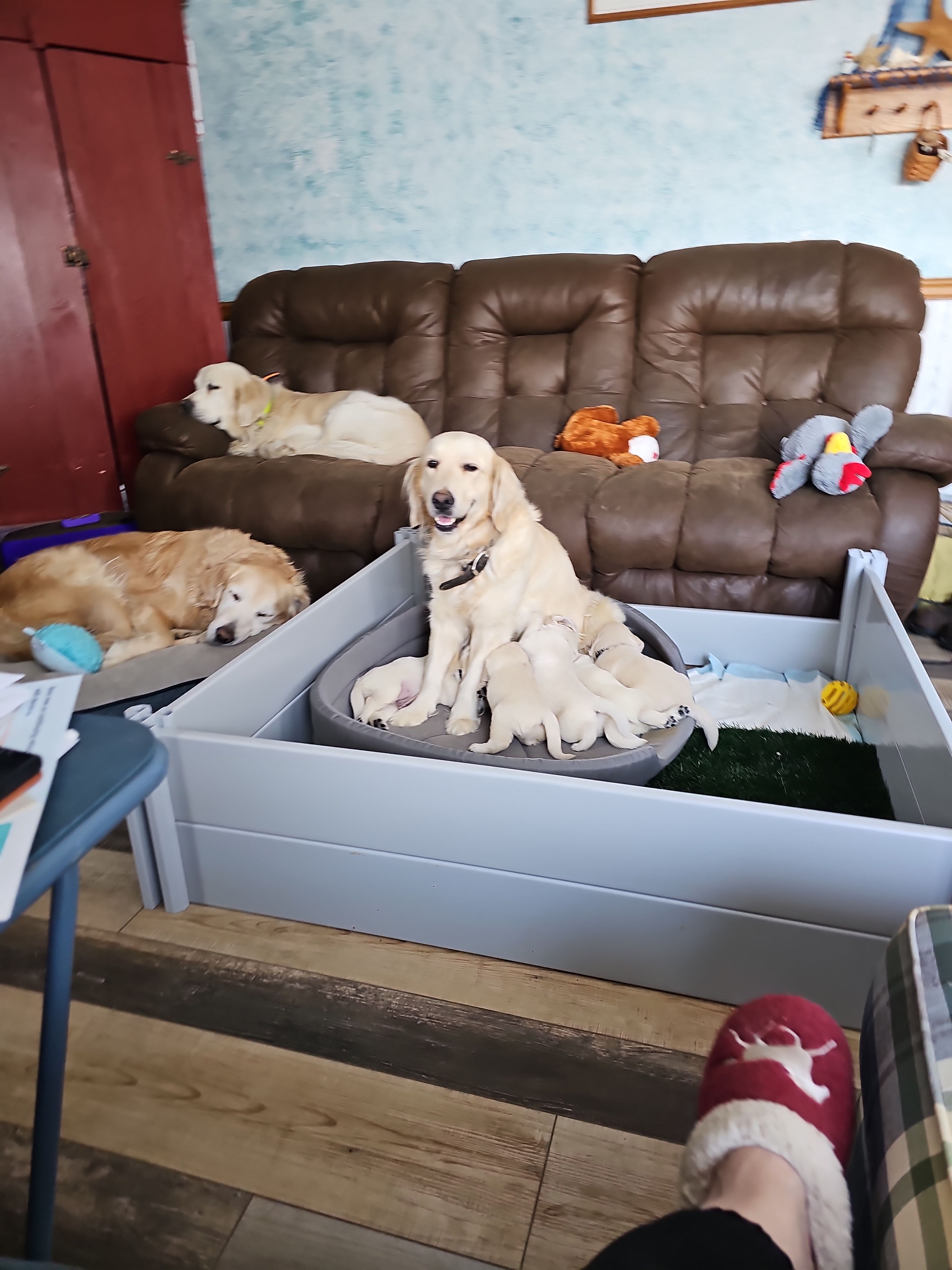 I am devoted to ensuring there are happy and healthy Golden Retrievers for others to enjoy, and I do so by responsibly growing this incredible breed. My dogs and puppies are considered members of my family, and they get the best care I can possibly provide.