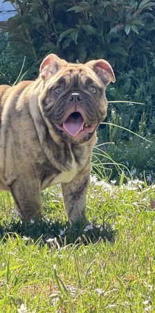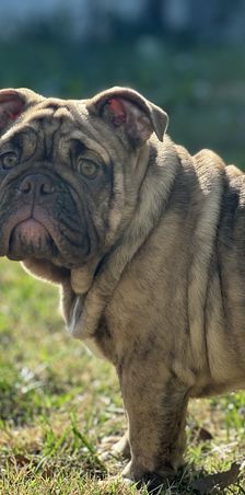 Nova is a female Bulldog. Carefully selected as a great representative of her breed, Silvia decided to make her part of their program. Silvia has passed Good Dog’s screening process, which involved a review of their breeding practices, environment, and the mental and physical health of their dogs.