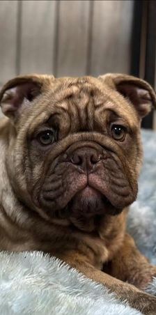 Dasher is a male Bulldog. Carefully selected as a great representative of his breed, Silvia decided to make him part of their program. Silvia has passed Good Dog’s screening process, which involved a review of their breeding practices, environment, and the mental and physical health of their dogs.