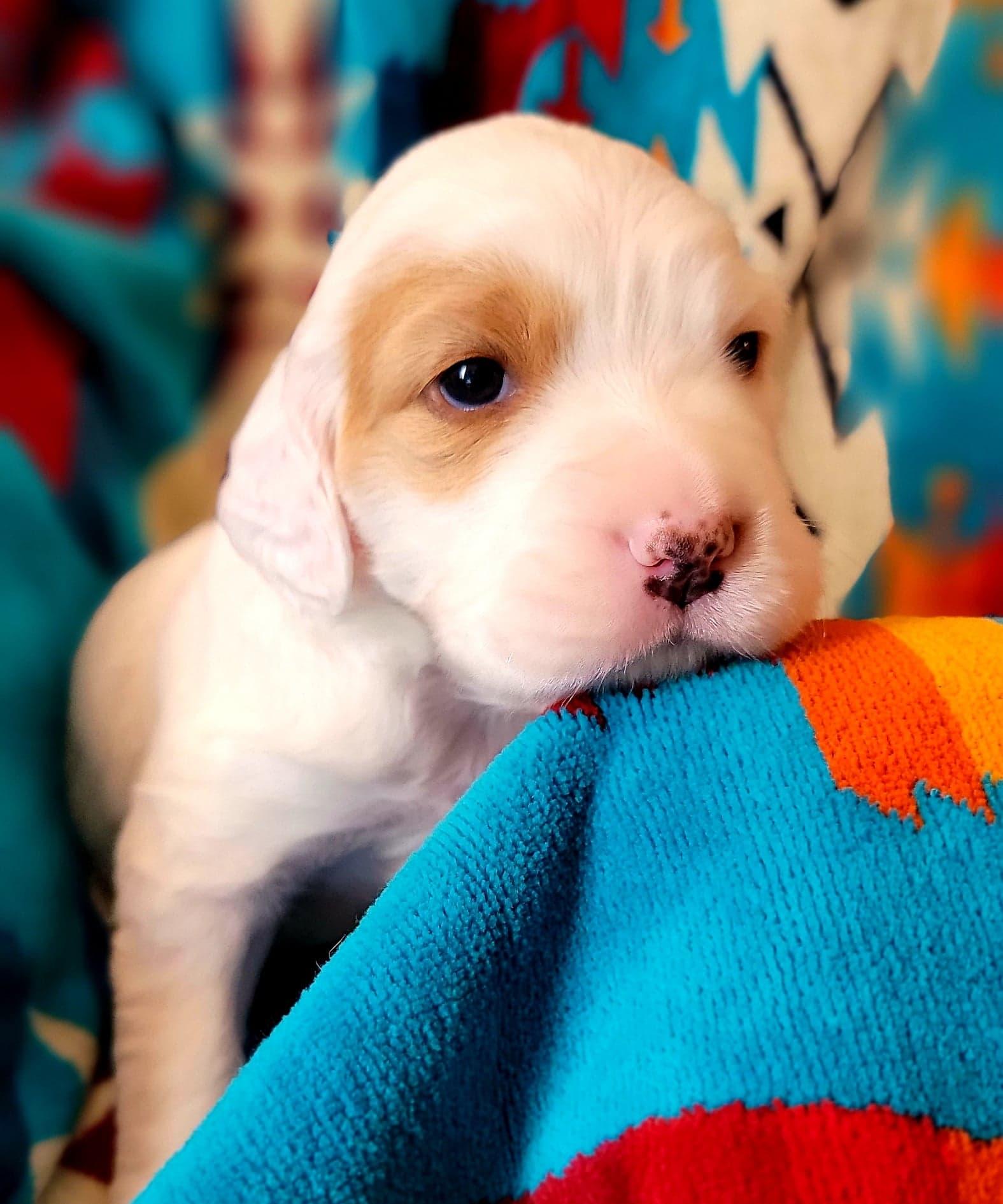 Our puppies include white, orange belton, liver belton, blue belton and tan (tri-color), lemon belton, and blue belton. Colors will vary depending on the parent dogs.