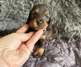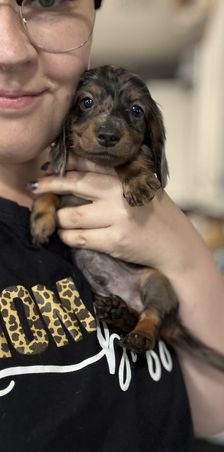 My experience with Ashley at EntityDachs could not have been a better experience. My husband found this breeder after my miniature dachshund, Molly passed away. I found that my grief was so intense and raw that I was in a very dark place and was struggling to get back to normal life. He asked me if I would like to get puppy to help repair my broken heart. I immediately said yes but stressed my concern that I was afraid to be scammed or misled into purchasing an unhealthy puppy. My husband did his research which led him to Good Dog and EntityDachs. We arranged to speak with Ashley and found her to be a delight. Our first conversation was a FaceTime. I immediately found myself relaxed with her pleasant demeanor and loved that she personally checks out every person that would adopt one of her puppies. We decided to work together and I found my new baby, Ruby Rose. Ashley communicated every day and sent picture updates or as I lovingly called them, pup-dates. I found myself depending on that daily pup-date in anticipation of bringing my angel home. She also set us up with her Facebook group which helped solidify the adoption and helped me feel secure that everything would be okay. Her responsiveness helped pull me out of my sadness and look to the future with my new baby. I officially brought Ruby home yesterday. Our exchange could not have gone smoother and I’m grateful for that because I honestly don’t think my heart could’ve taken it otherwise. Ashley completed Ruby’s 8 week vet visit and made a plan to meet immediately after if all went well with vaccines. Fortunately, Ruby did great. We met at a Tractor Supply where Ashley handed me my puppy and set us up for success by sending us home with some basic necessities, Ruby’s paperwork, and some other items to make her transition go well. Our first night went perfect. You can see the love and attention that Ruby experienced while in Ashley’s care. She is clean, well cared for, and craves love. She is such a happy, loving dog. Ashley clearly gave this baby a loving start. Ashley also contacted us that evening to make sure all was going well. Throughout our interactions, Ashley has been professional, sweet, and caring. We are so grateful to have found Ashley at EntityDachs and furthermore, our new family member Ruby. We fully intend to make another purchase from this breeder in the future.