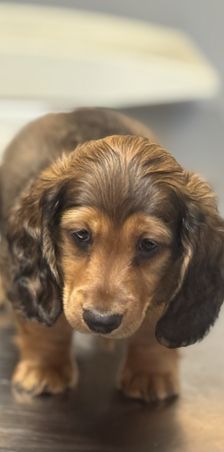 Our puppies include red, chocolate, chocolate and tan, black and tan, and dapple. Colors will vary depending on the parent dogs.
