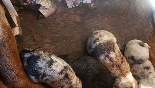 Our puppies include red & white, black & white, red merle, blue merle, red, dilute red, black tri-color, and red tri-color. Colors will vary depending on the parent dogs.