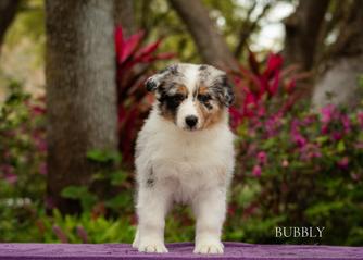 Our Australian Shepherd puppies include red merle, blue merle, black tri-color, and red tri-color. Colors will vary depending on the parent dogs.