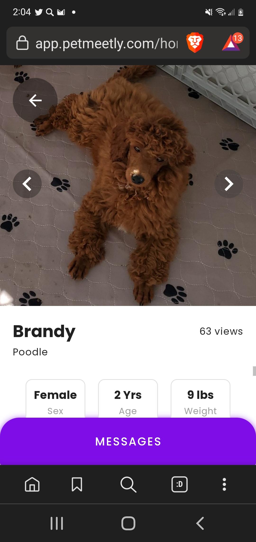 Brandy is a female Poodle. Carefully selected as a great representative of her breed, Sabrina decided to make her part of their program. Sabrina has passed Good Dog’s screening process, which involved a review of their breeding practices, environment, and the mental and physical health of their dogs.