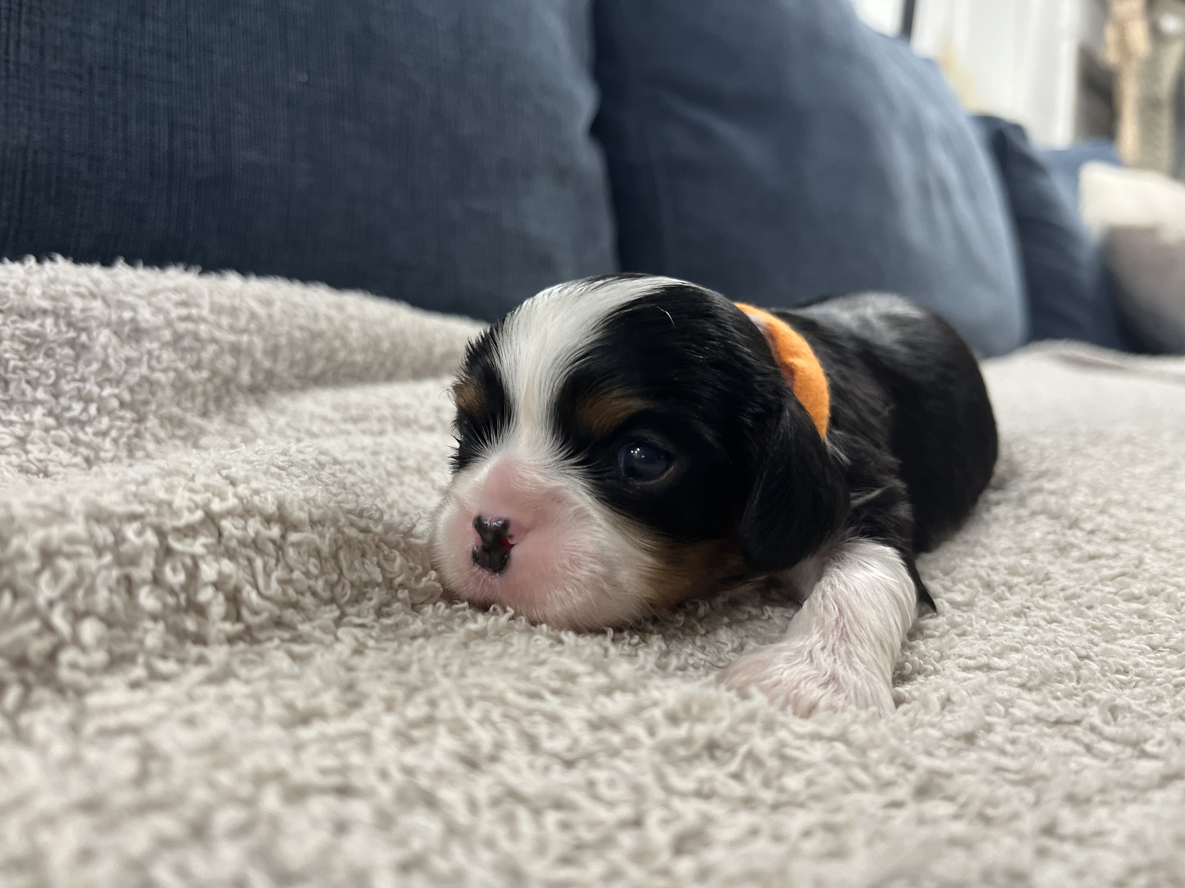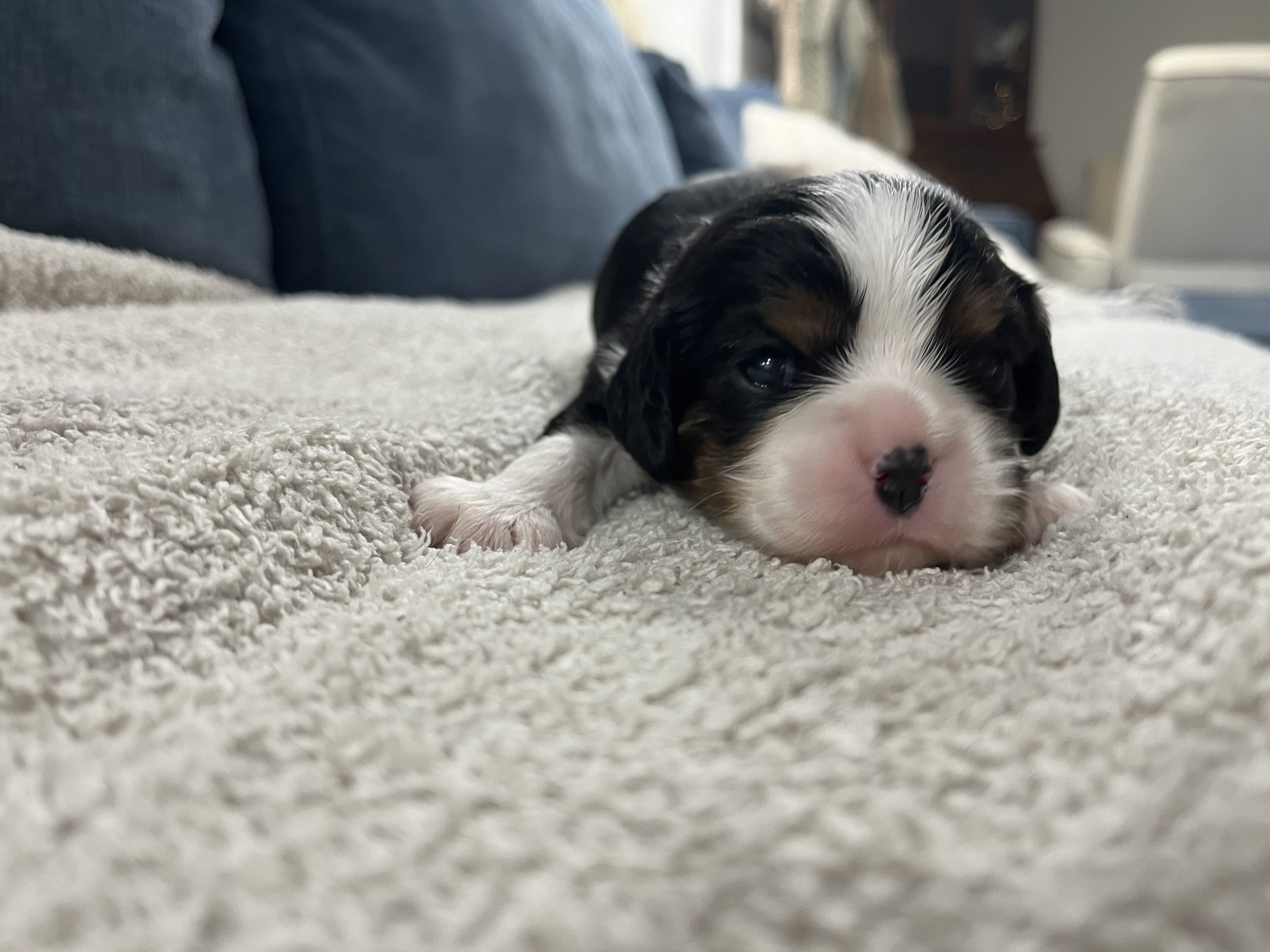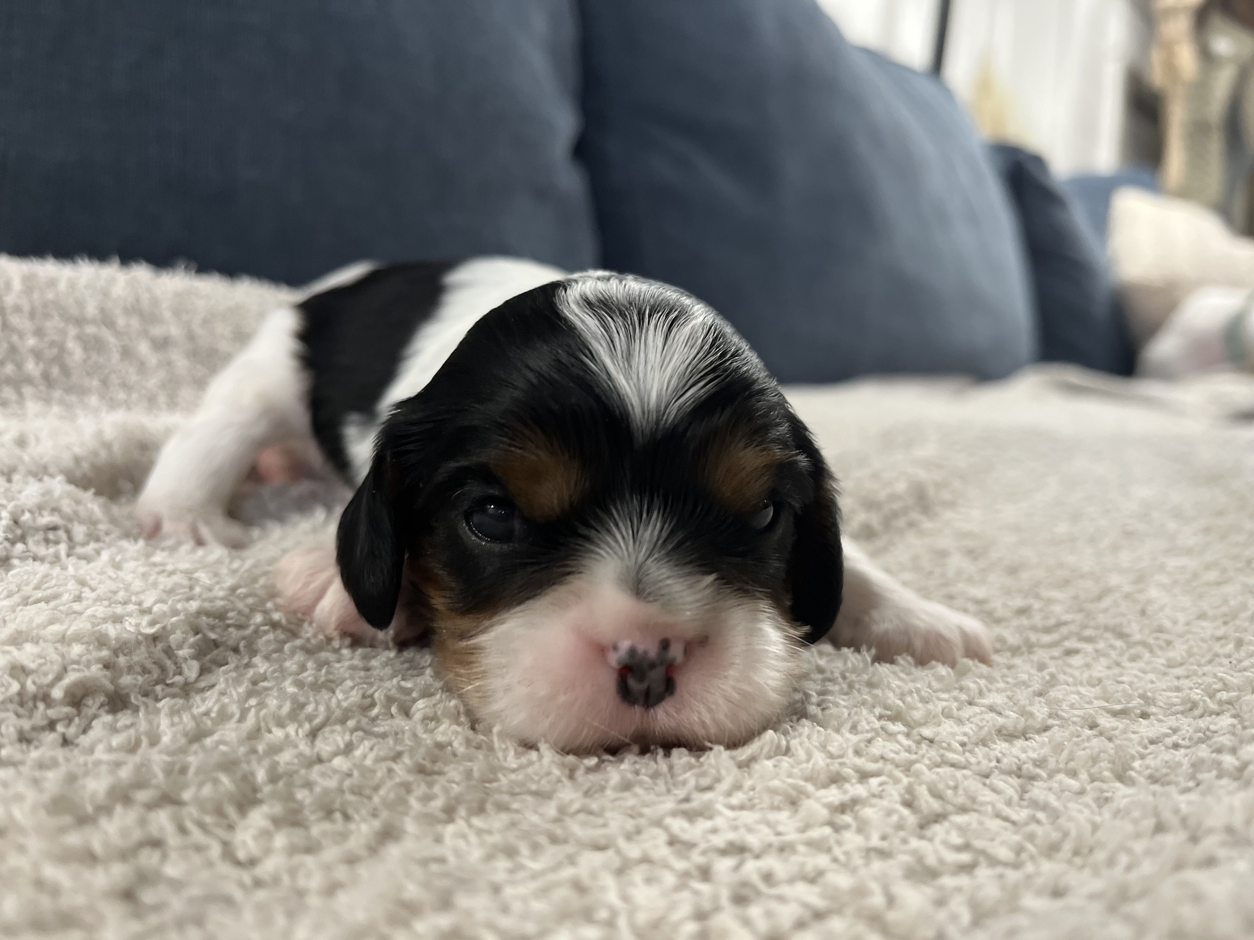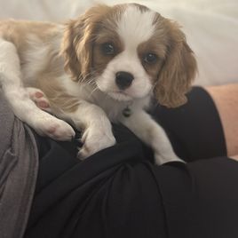 Alayne was so wonderful to work with! You can tell how much love and care they put in to each and every one of their puppies. Our little guy Bo (Knox) has done great settling into his new home! He is the sweetest little thing and has been doing amazing with potty training and crate training! He has done so well with our kids and is the best little cuddle buddy! We love him so much already! Alayne was so good about staying in touch, sharing updates, and answering every question we had. I would recommend her to anyone wanting to get a cavalier that is in excellent health and extremely well taken care of. Thank you so much Alayne for our healthy and happy pup!