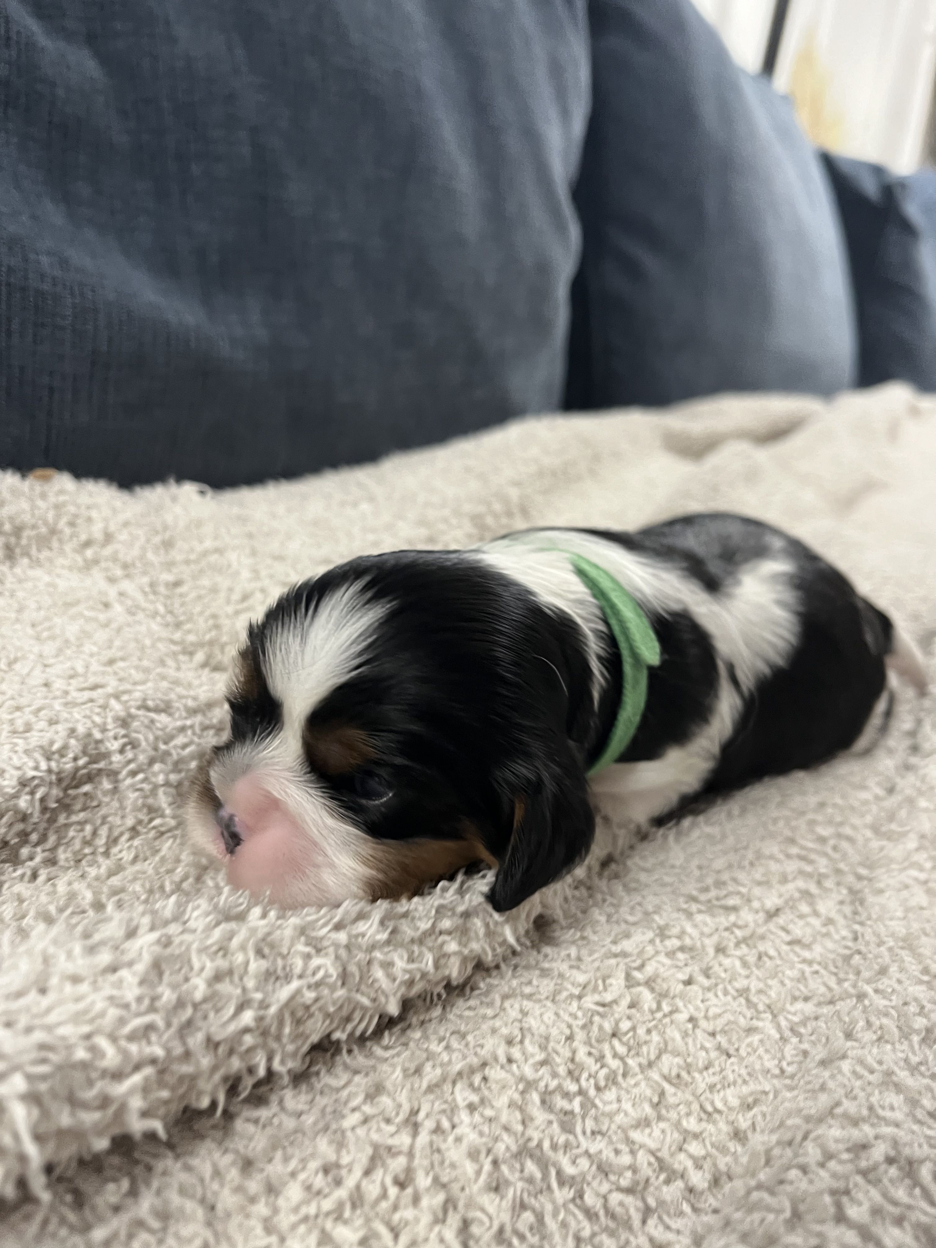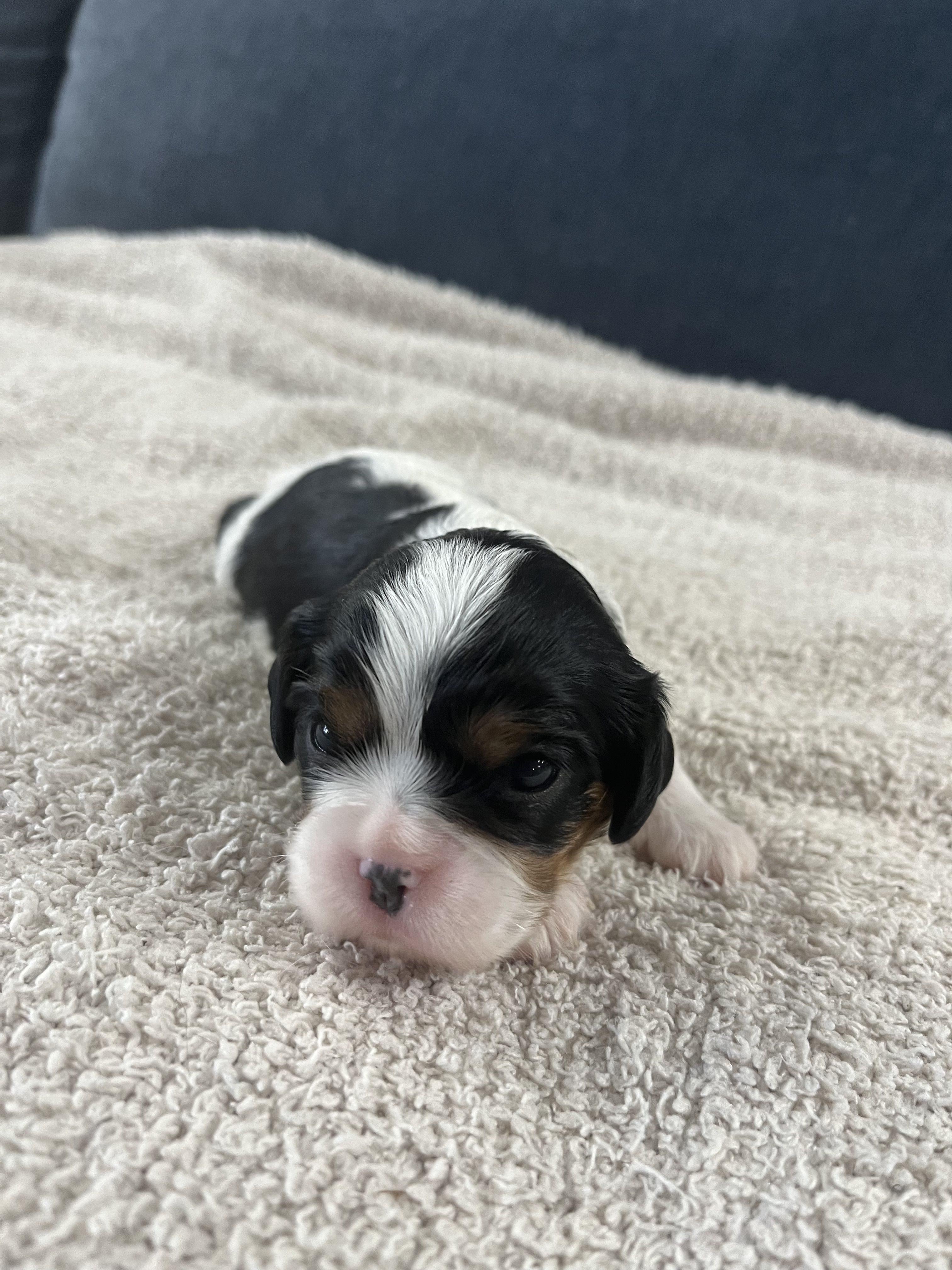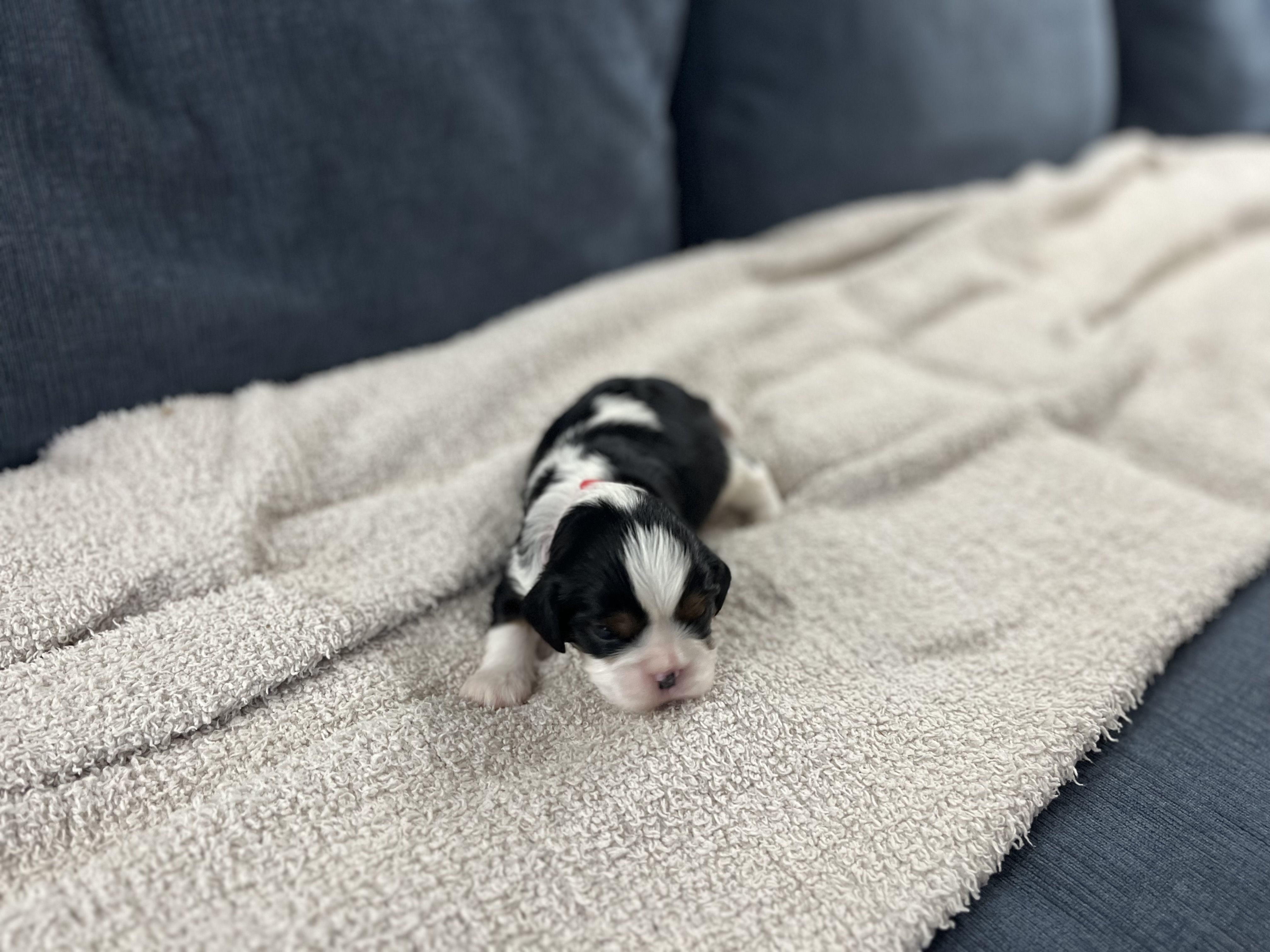 Alayne was so wonderful to work with! You can tell how much love and care they put in to each and every one of their puppies. Our little guy Bo (Knox) has done great settling into his new home! He is the sweetest little thing and has been doing amazing with potty training and crate training! He has done so well with our kids and is the best little cuddle buddy! We love him so much already! Alayne was so good about staying in touch, sharing updates, and answering every question we had. I would recommend her to anyone wanting to get a cavalier that is in excellent health and extremely well taken care of. Thank you so much Alayne for our healthy and happy pup!