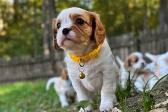 Our puppies are blenheim. Colors will vary depending on the parent dogs.