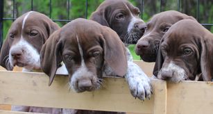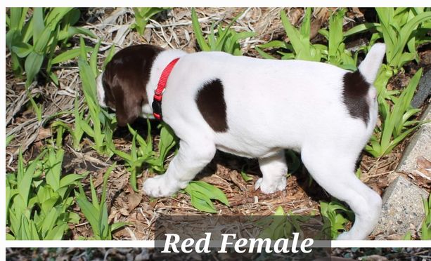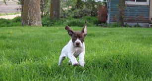 I'm Erin E., the breeder behind Erin Eustice's German Shorthaired Pointers located in Clinton, MN. Our female pup was whelped and raised in our family home and socialized daily by our 4 children. Full AKC registration available. Tail docked to field length, dew claws removed and is up to date on vaccinations and deworming. Champion and proven bloodlines. Ready to go to her new forever family!