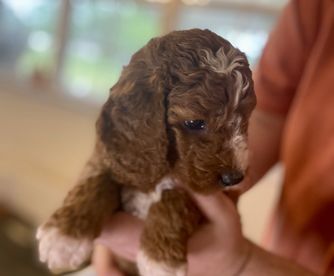 Lila is a female Goldendoodle. Carefully selected as a great representative of her breed, Laura decided to make her part of their program. Laura has passed Good Dog’s screening process, which involved a review of their breeding practices, environment, and the mental and physical health of their dogs.