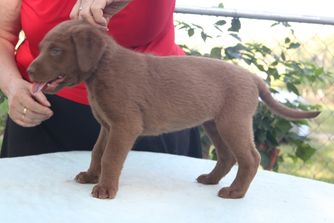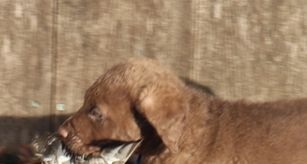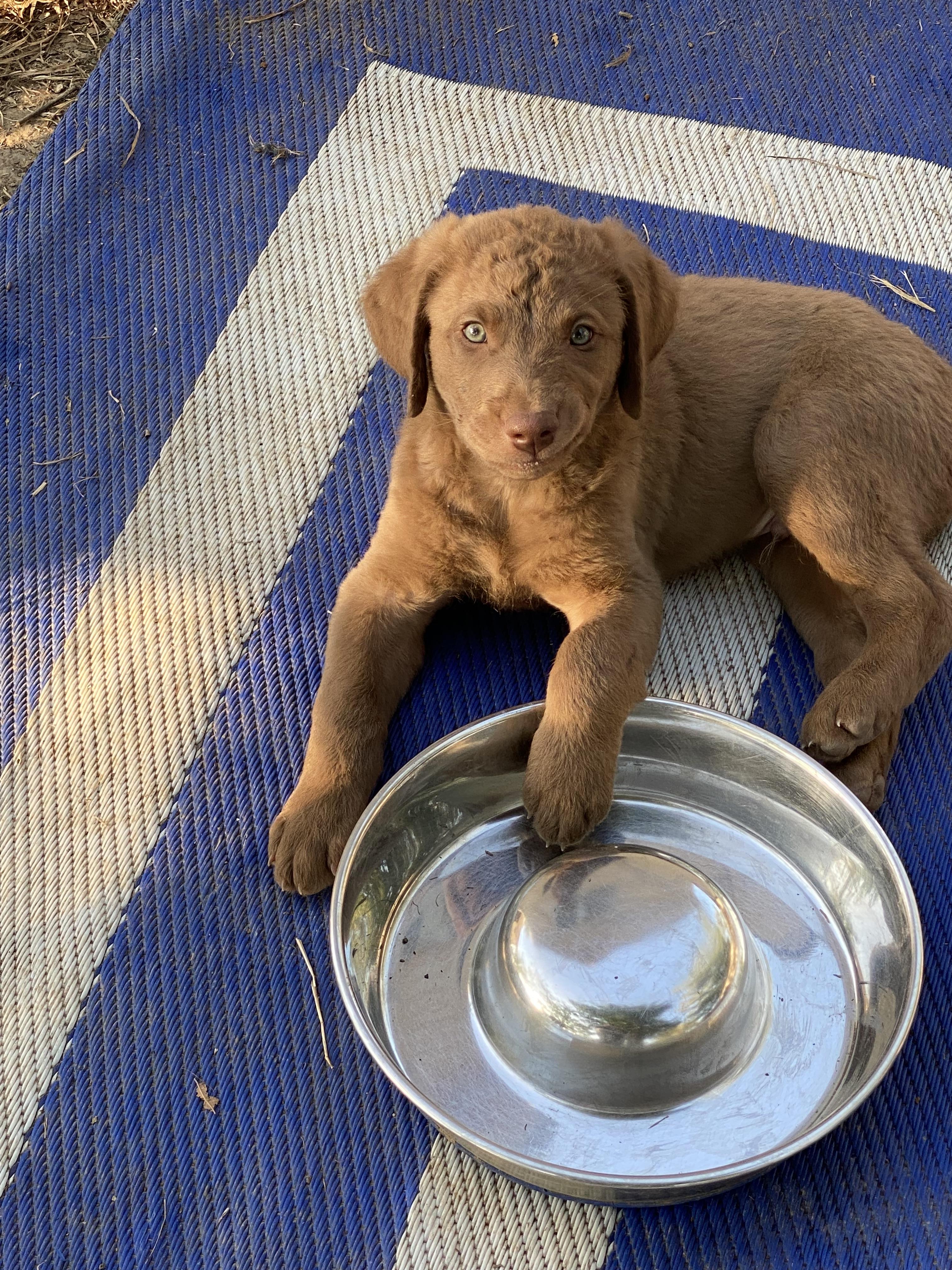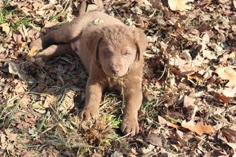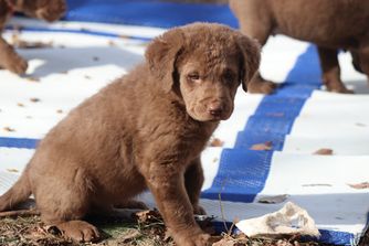 I do everything I can to ensure my puppies have what they need to develop into healthy and happy dogs. I also love to stay in touch with buyers after my puppies have gone to their forever homes, so you are always welcome to contact me with questions or cute pictures! In my breeding program, I follow the health testing requirements of the Chesapeake Bay Retriever parent club( amchessieclub.org) to ensure the good health of the dogs and the breed moving forward. The temperament and trainability of these working dogs are essential, and you must commit to keeping them challenged and busy. However, cuteness is guaranteed, and loyalty and love is always included.