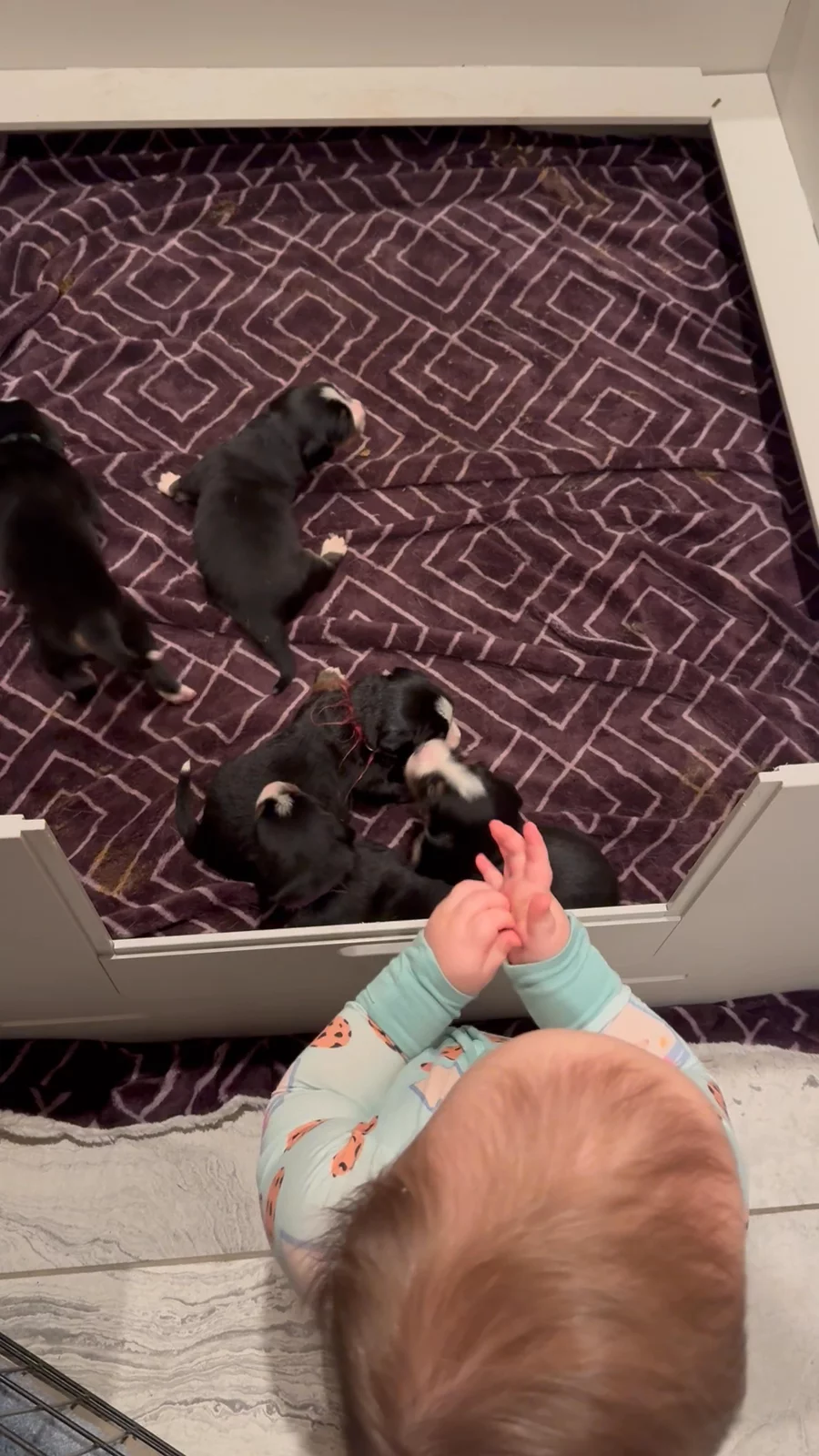 Puppies have their eyes open and are discovering the world more and more ❤️. They are raised with our year old son who adores them already.