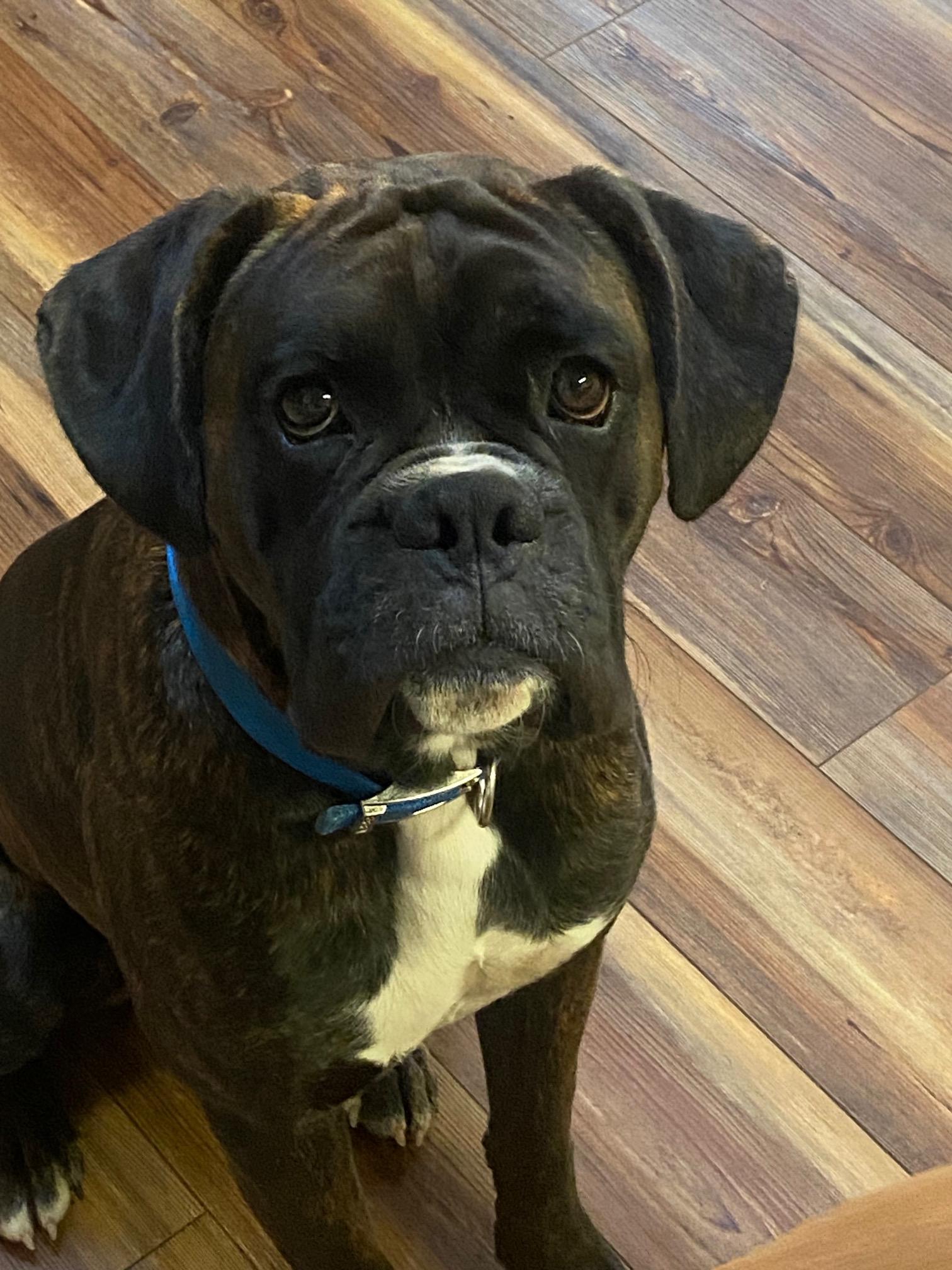 Bella is a female Boxer. Carefully selected as a great representative of her breed, Victor decided to make her part of their program. Victor has passed Good Dog’s screening process, which involved a review of their breeding practices, environment, and the mental and physical health of their dogs.