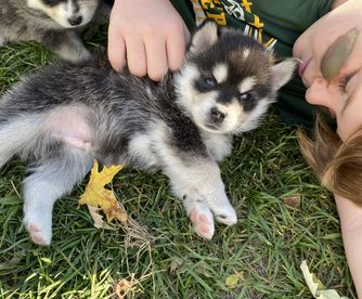 I'm Kelly T., the breeder behind E&T Pomsky located in Illinois. Our dogs are our beloved companions. We care deeply about this breed and are proud to be responsible Pomsky breeders. We offer well-rounded, healthy, high-drive Pomsky puppies who will excel in any adventure with their new family! Our dogs are intelligent, loving, and athletic, and they produce puppies who will thrive in an active lifestyle. We're passionate about these dogs and are careful to breed and raise our pups with only the best policies.