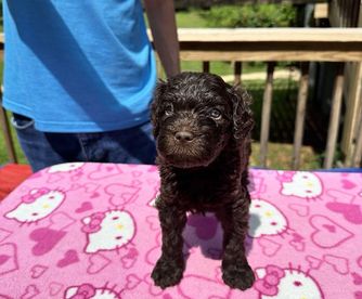 Madee is a female Barbet. Carefully selected as a great representative of her breed, Ellen decided to make her part of their program. Ellen has passed Good Dog’s screening process, which involved a review of their breeding practices, environment, and the mental and physical health of their dogs.