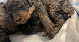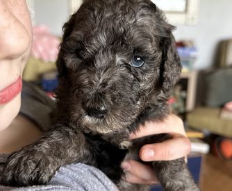Our Labradoodle puppies include merle, apricot, cream, chocolate, black, and blue. Colors will vary depending on the parent dogs.