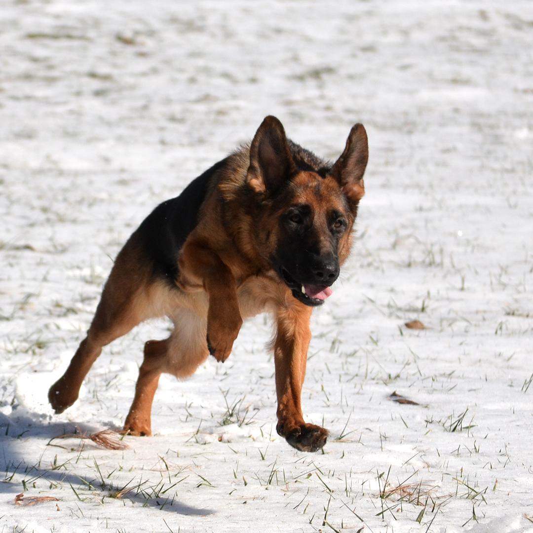Vera is a born-and-raised Euro Deja puppy that was kept after careful consideration from our breeding with Gwen (now retired) and our beloved Finn. We're honored that she is now a part of our selective breeding program. She has a wonderful temperament just like the many generations before her and is a delightful member of the family located in Newark, Delaware. On the daily, she loves to play soccer with her three young boys and diligently watches over everyone's safety--including the chickens! She also shares faithful guardianship of the family with her Mom, Gwen, along with a household cat. Vera is loyal and intelligent with a sweet and happy demeanor. She has great focus and attention with a strong desire to please, making her a delight to interact with. Vera has great conformation and is graceful in movement. Her coloration is red and black, she has dark almond eyes, and the sweetest expression. See more of Vera on IG EuroDejaShepherds where you can watch vidoes of Vera on her highlight labeled "Vera".