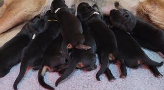 Our puppies include black and black and red. Colors will vary depending on the parent dogs.