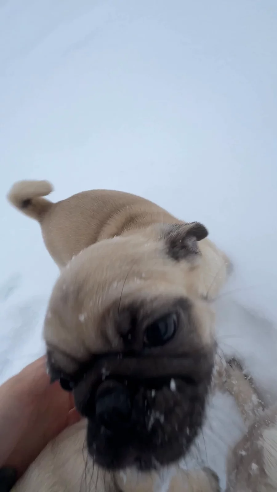 The pug baby’s enjoying a little run in the snow!!!😍😍