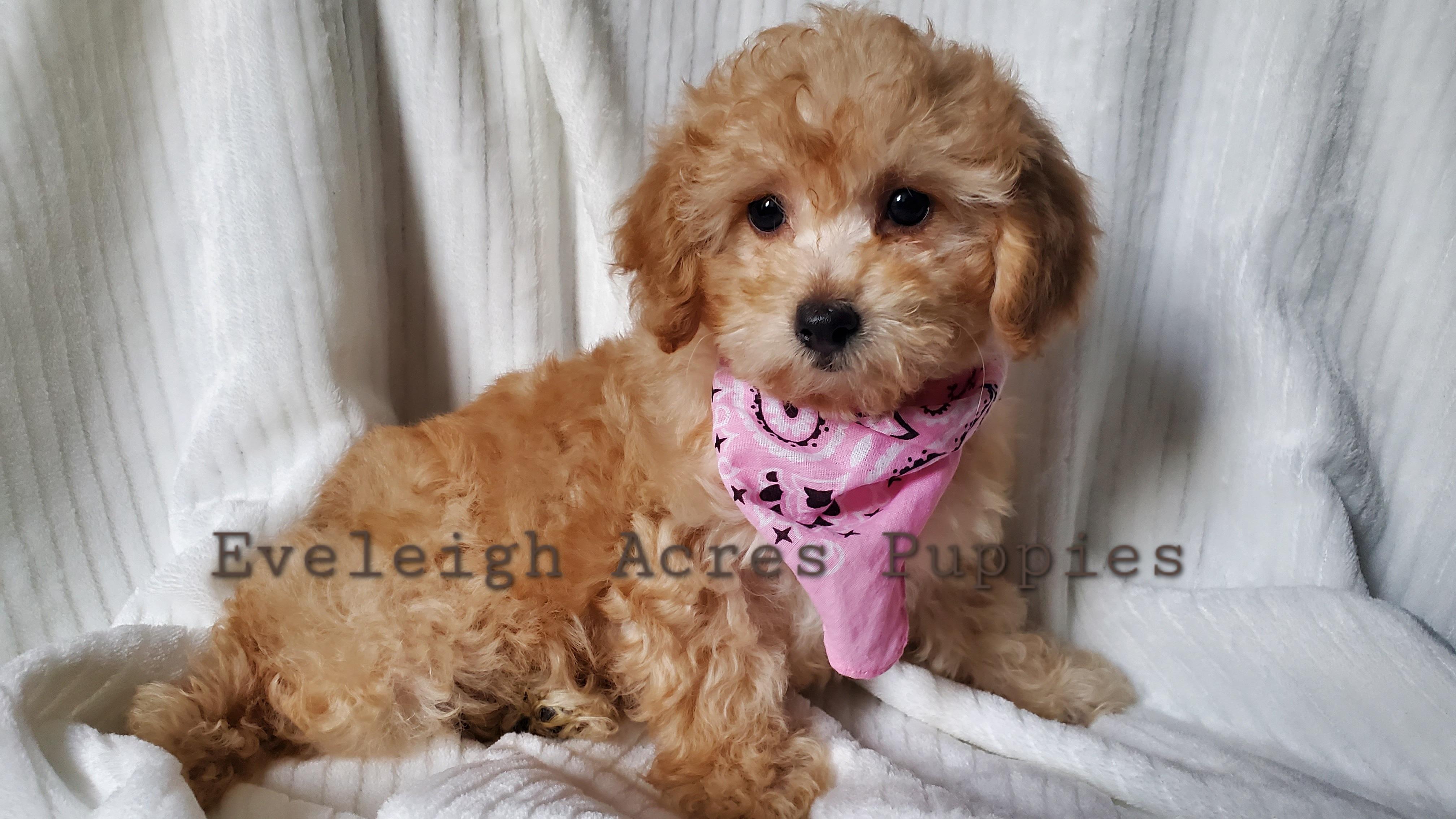 I'm Karen C., the breeder behind Eveleigh Acres Puppies located in Leitchfield, KY. We raise all our puppies and parents in our home. They are played with daily to help socialize them before going home. Our puppies are litter box trained. Every litter is vet health checked and receive first vaccines prior to pick up.