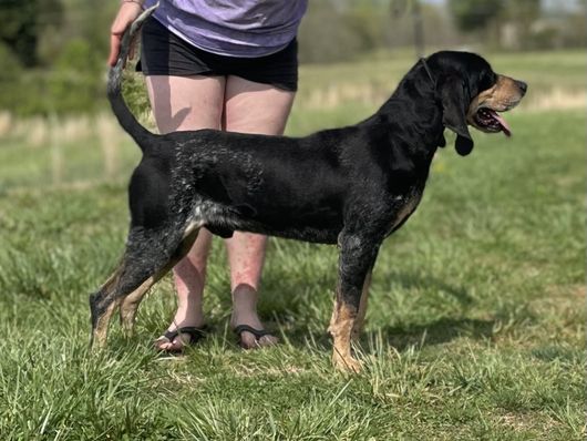 Luke is a male Bluetick Coonhound. Carefully selected as a great representative of his breed, Kacie decided to make him part of their program. Kacie has passed Good Dog’s screening process, which involved a review of their breeding practices, environment, and the mental and physical health of their dogs.