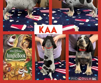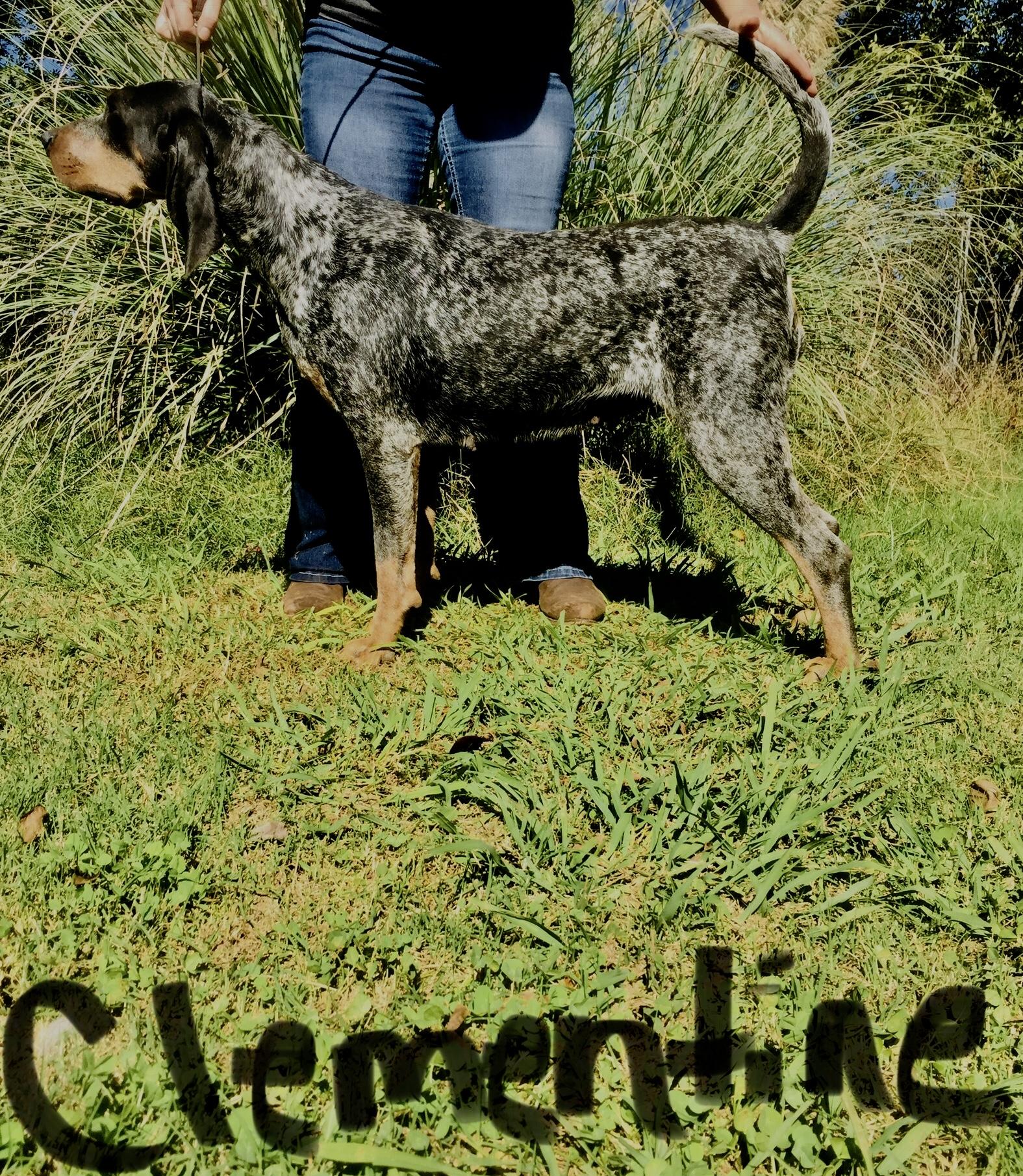 Clementine is a female Bluetick Coonhound. Carefully selected as a great representative of her breed, Kacie decided to make her part of their program. Kacie has passed Good Dog’s screening process, which involved a review of their breeding practices, environment, and the mental and physical health of their dogs.