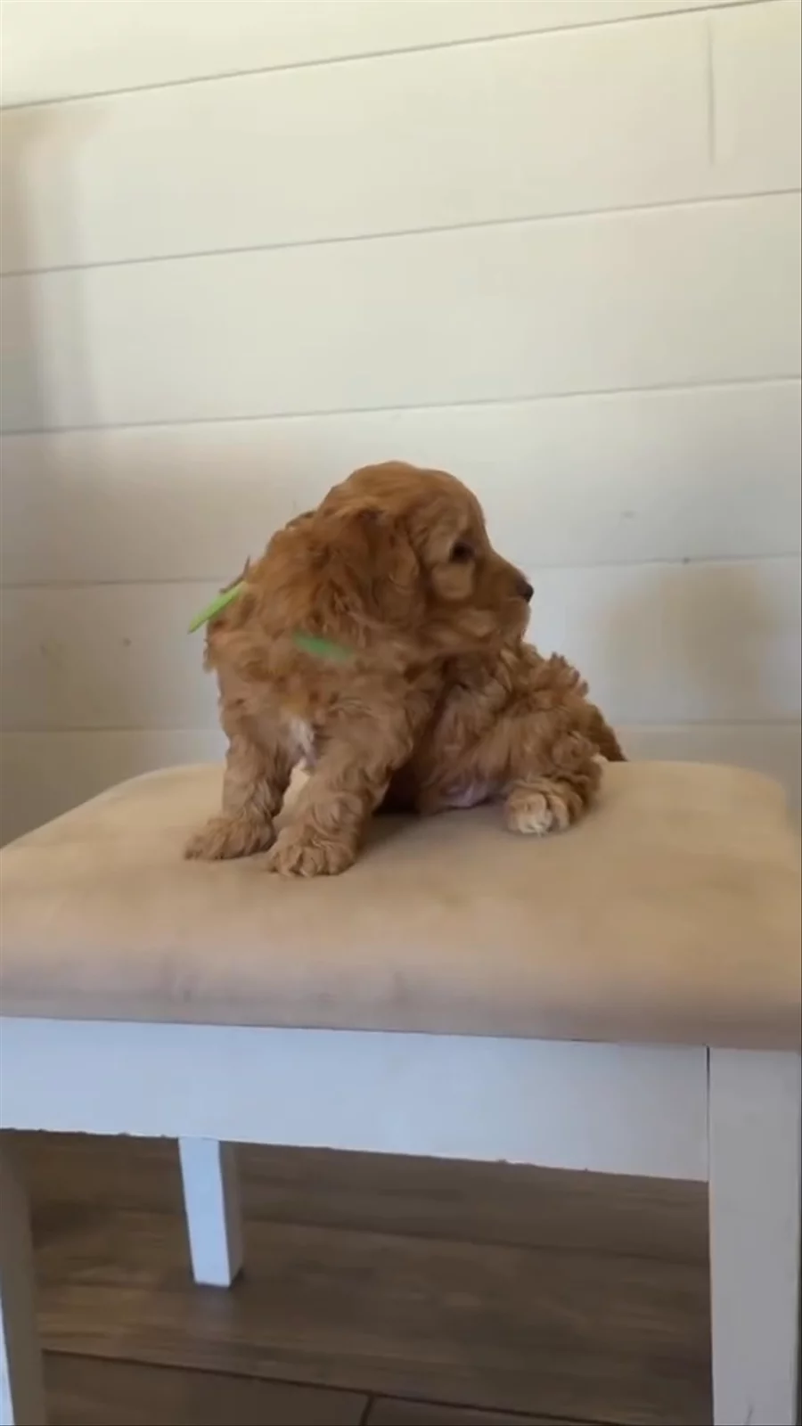 Poppy is a female Cavapoo. Carefully selected as a great representative of her breed, Vanessa decided to make her part of their program. Vanessa has passed Good Dog’s screening process, which involved a review of their breeding practices, environment, and the mental and physical health of their dogs.