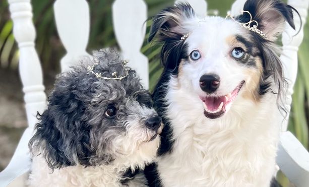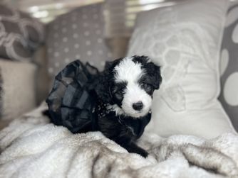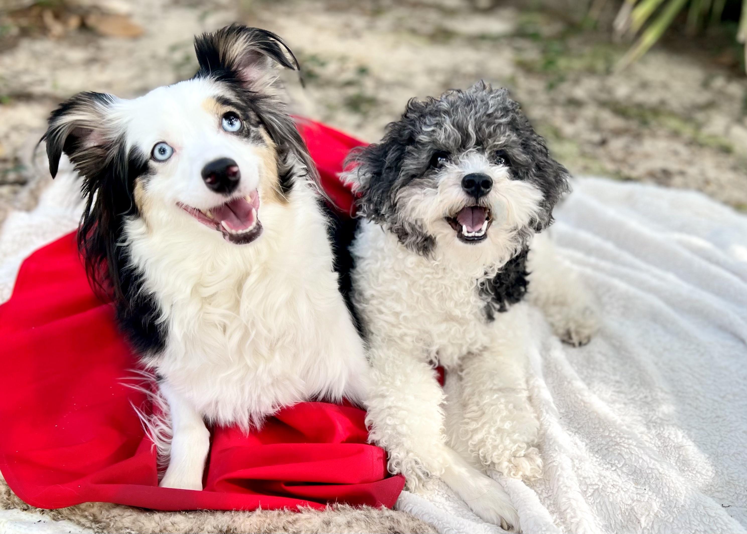 We fell in love with mini aussiedoodle breed combining our love for poodles and Australian shepherds! They are intelligent, easy to train, so affectionate and healthy!