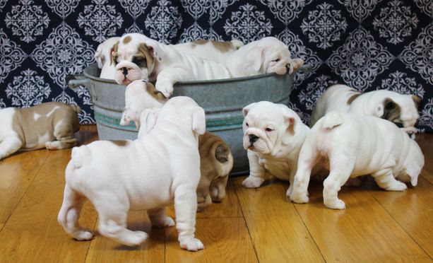 Our puppies include fallow, red, fawn, white, red brindle and white, red brindle, red and white, fawn brindle and white, fawn and white, and brindle. Colors will vary depending on the parent dogs.