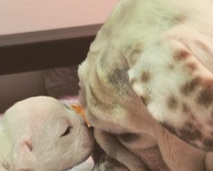 Valkyrie is a female Bulldog. Carefully selected as a great representative of her breed, Kristin decided to make her part of their program. Kristin has passed Good Dog’s screening process, which involved a review of their breeding practices, environment, and the mental and physical health of their dogs.