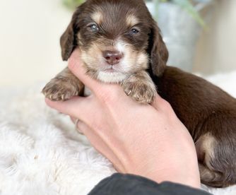 Aure is a male Dachshund. Carefully selected as a great representative of his breed, Amy decided to make him part of their program. Amy has passed Good Dog’s screening process, which involved a review of their breeding practices, environment, and the mental and physical health of their dogs.
