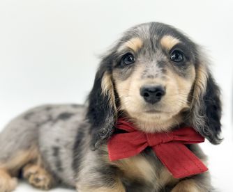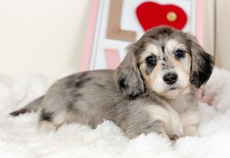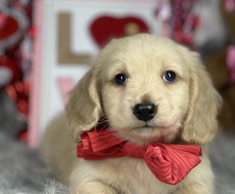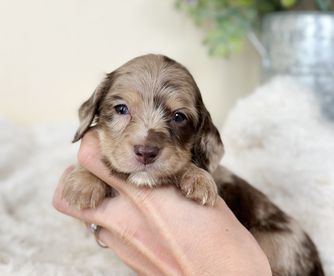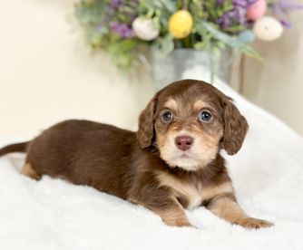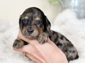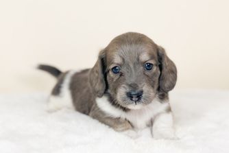 Wrangler is a male Dachshund. Carefully selected as a great representative of his breed, Amy decided to make him part of their program. Amy has passed Good Dog’s screening process, which involved a review of their breeding practices, environment, and the mental and physical health of their dogs.