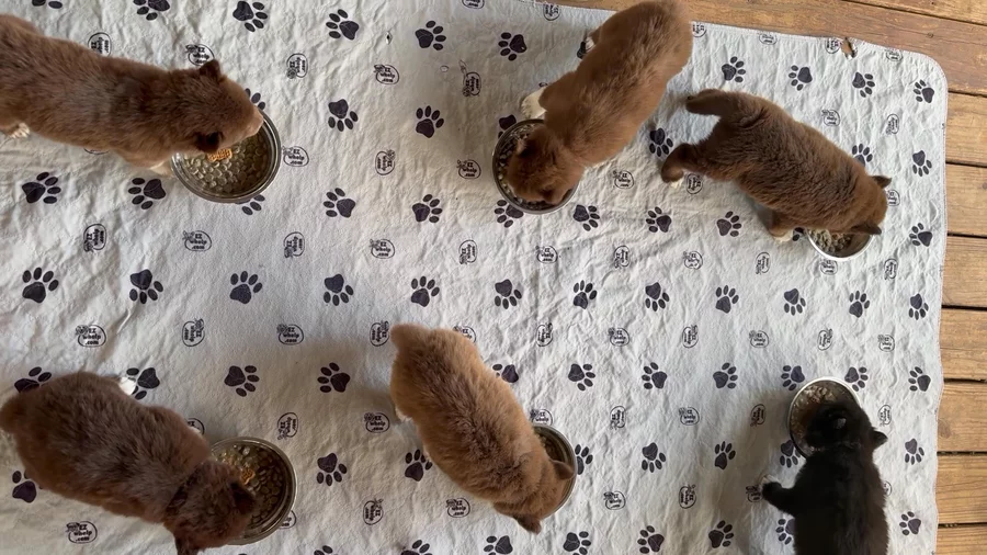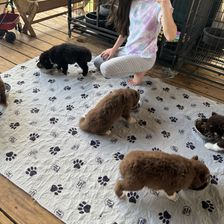 We’ve started structured weaning, and each pup gets their own bowl of softened kibble topped with a little biscuit surprise. They’re thriving on routine, and we focus on healthy beginnings, one meal at a time. Raised in a family setting, our pups get plenty of love and socialization — with a little help from our dedicated junior assistant, who makes sure everyone feels seen and snuggled.